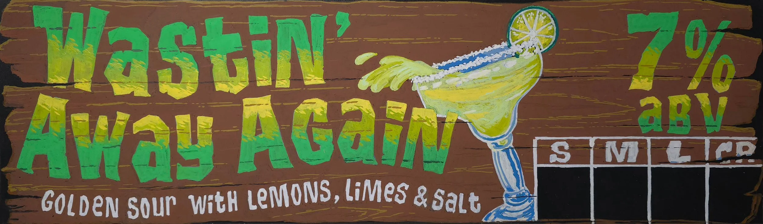 7% ABV; The newest addition to the Golden Sour Ales coming from our oak foeder, Wastin’ Away Again was fermented and aged for over a year in our foeder, then transferred to stainless where we added freshly squeezed lemon and lime juice and fresh lemon and lime zest, as well as sea salt.