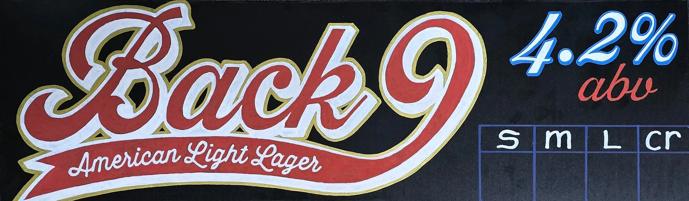 4.2% ABV; Light and crushable, this American Light Lager is super easy drinking and perfect for hot summer days, cookouts, and chilling out on the fairway.